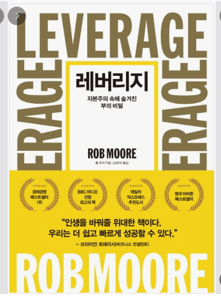 롭 무어(Rob Moore)-레버리지(Leverage)는 중요하지 않은 일을 다른 사람에게 아웃소싱하는 것을 말한다. 그것은 최소한의 노력으로 최대의 결과를 만들어내는 것이다. 시간과 자원을 최대한 효율적으로 활용하여 더 큰 성과를 이루는 방법을 안내한다. 당신은 시간, 돈, 지식, 사람 관계 등을 레버리지하여 더 큰 성과를 이끌어내는 통찰력(insight)을 얻을 수 있다. 저자 롭 무어, 번역 김유미 , 출판 다산북스, 발행 2023.02.15.