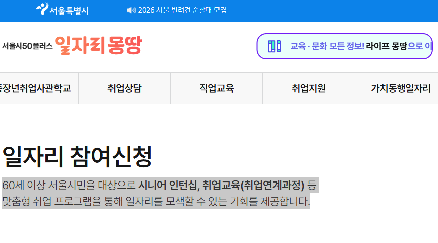 - 서울시 50플러스재단 ‘일자리 몽땅’ 접속
